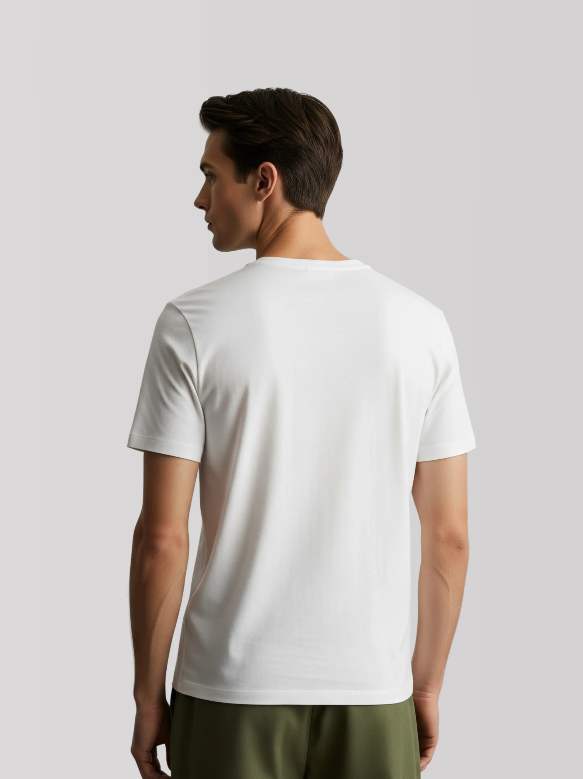 A classic, breathable 100% cotton white T-shirt with typography design.