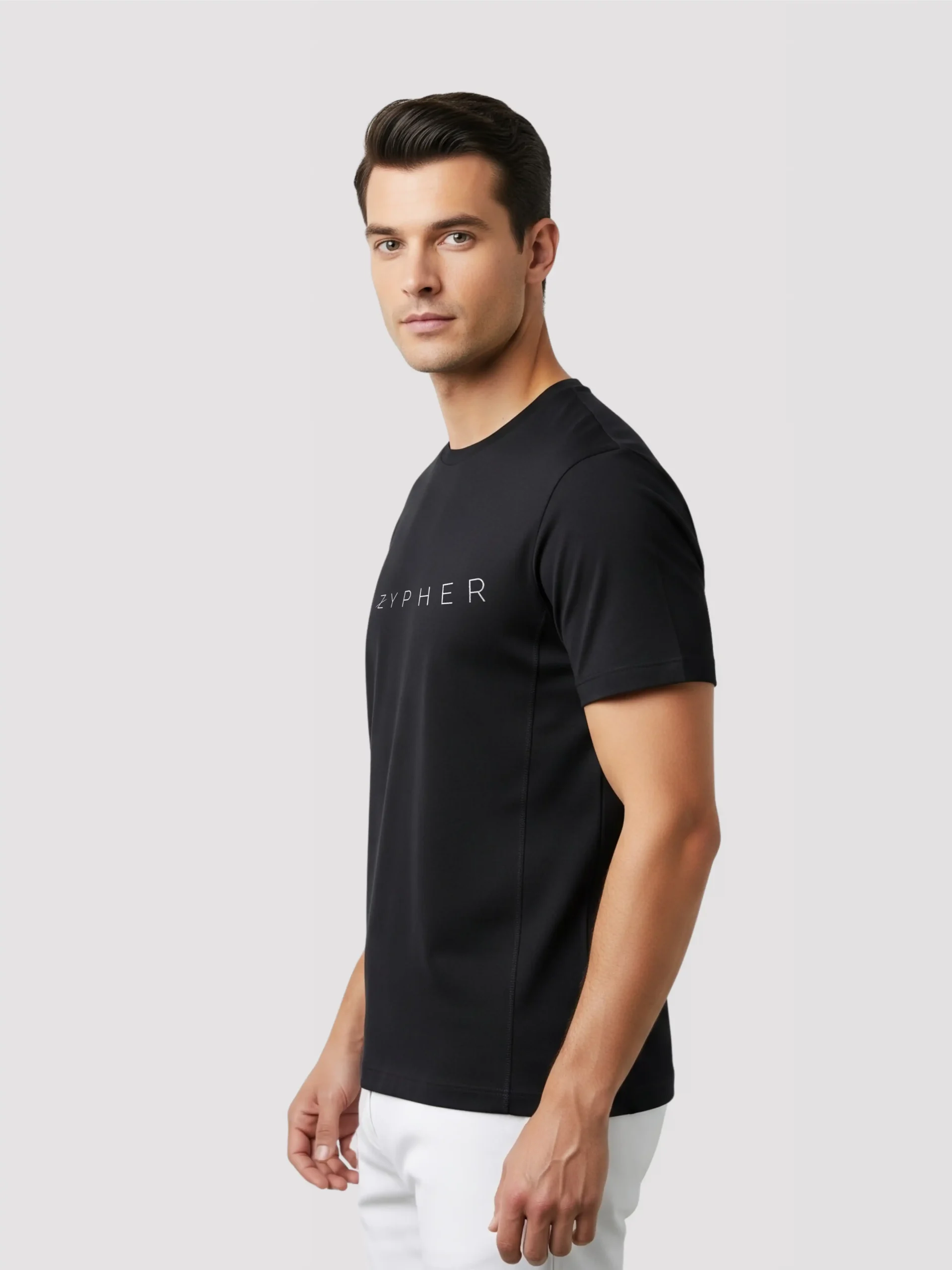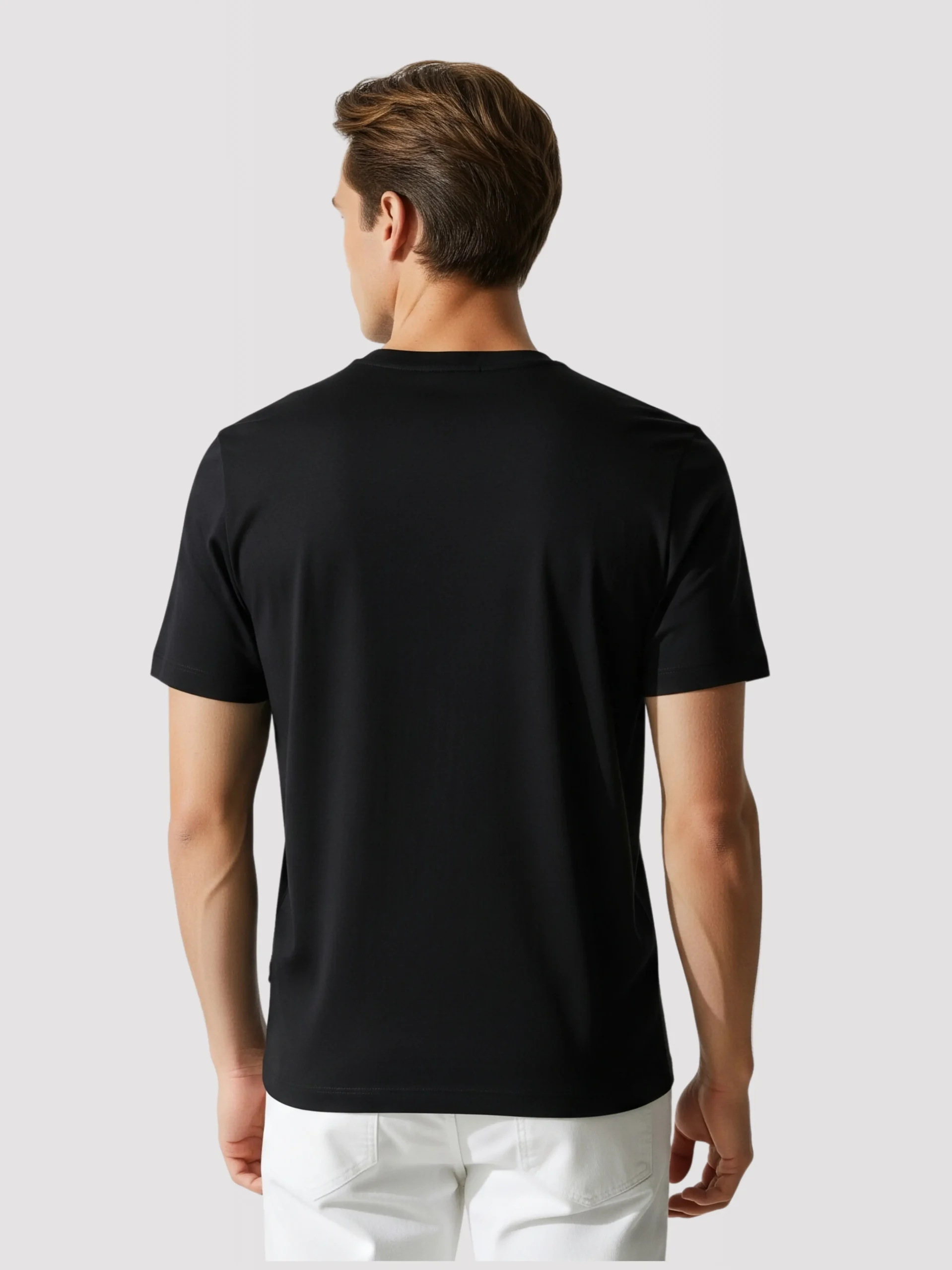 Minimalist black tee with striking Lumere print, perfect for everyday wear and casual style.